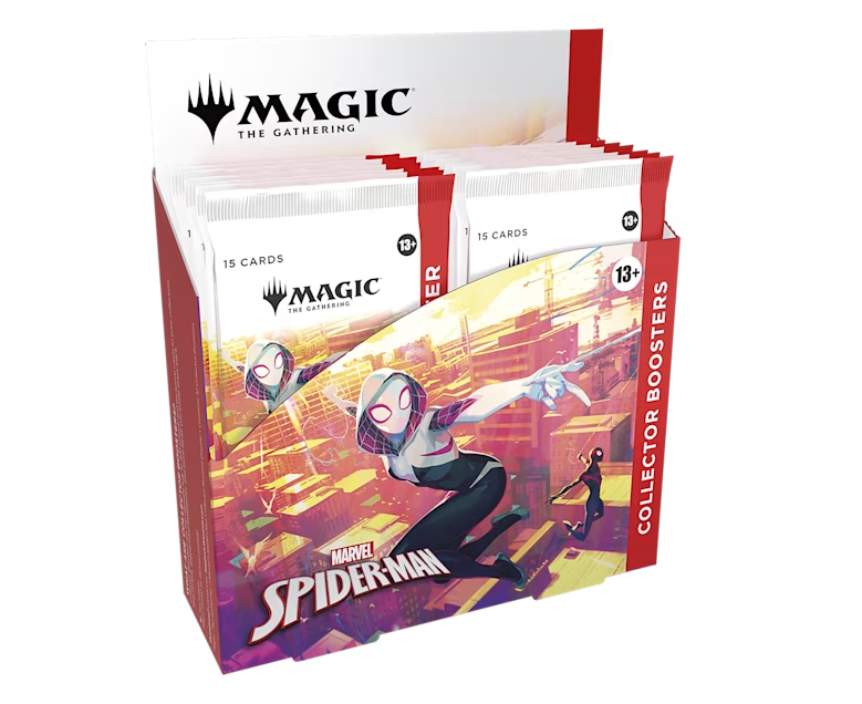 Spider Man prerelease draft has a special feature – we know Collector Boosters have been hard to get. So in addition to our regular prizing (which guarantees every player at LEAST 1 pack no matter their standings), we will also be giving a random collector booster away in every pod of 6-8 players that attends this draft. This will be given away to a random player, regardless of standings, in order to keep the mood of the draft fun and casual for new players, but also add some excitement.
